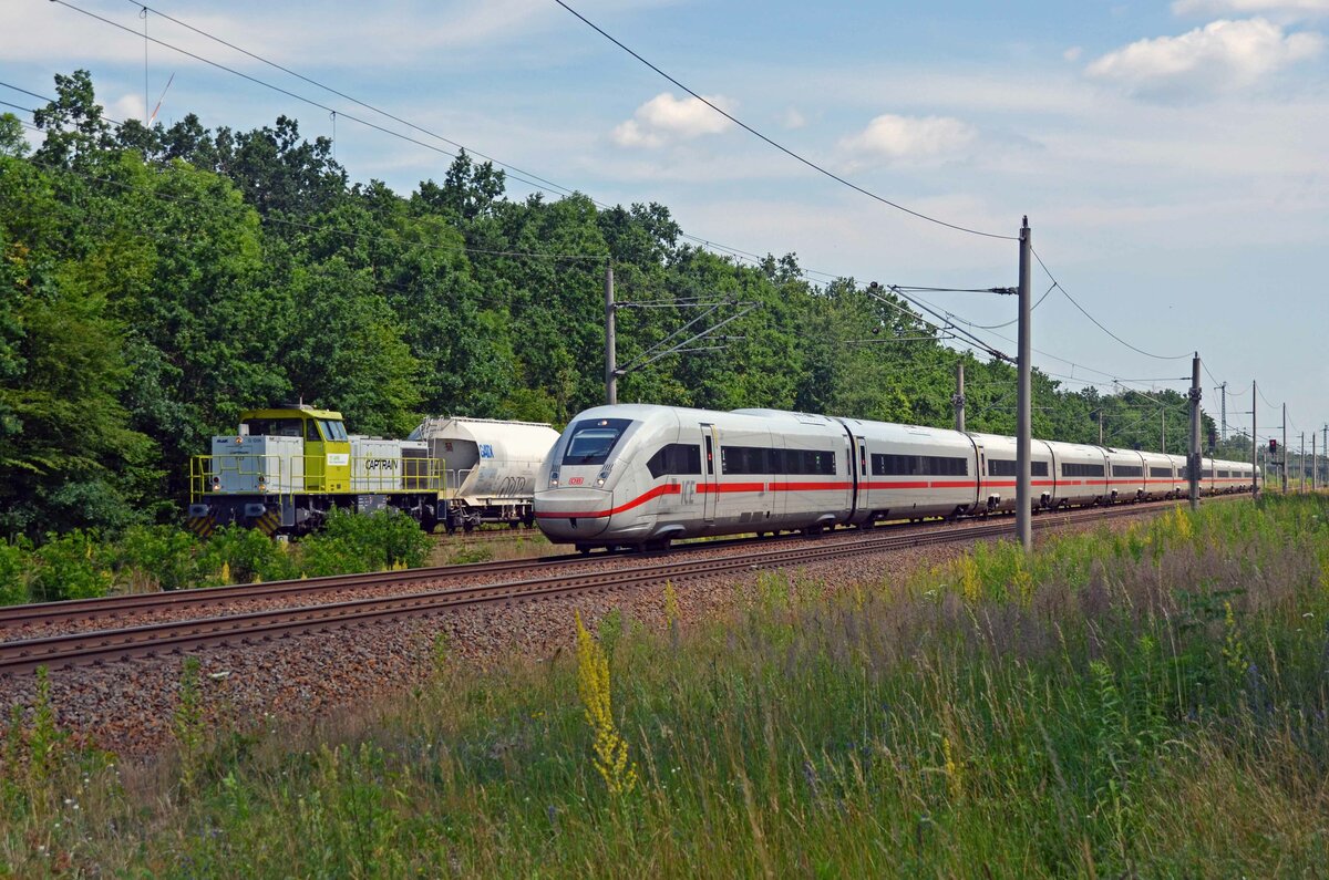 Am 04.07.21 traf der ICE 507 in Burgkemnitz auf 275 120 welche mit ihrem Zug auf die Weiterfahrt nach Bitterfeld wartete.