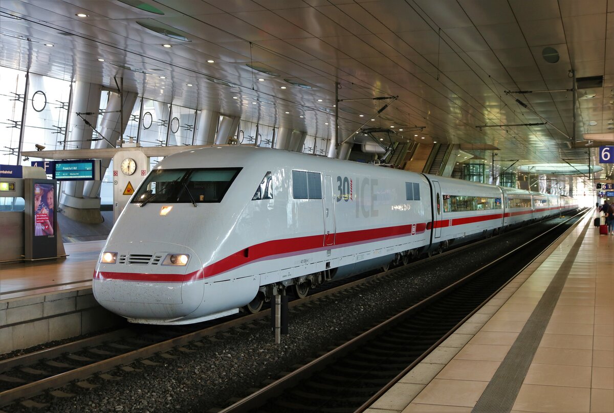 412 041 ff. "Baden-Württemberg" als ICE 592 München-Leipzig am 02.07.2021 am Eszetsteg in Stuttgart.