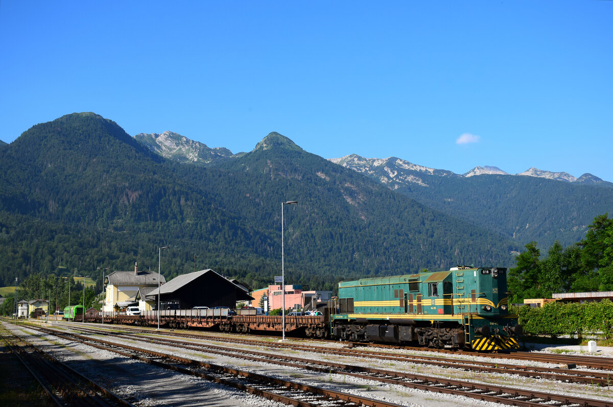 Die 664 102 "Reagan" wartet darauf beladen zu werden und dann auf der Abfahrt nach Bohinjska Bistrica.