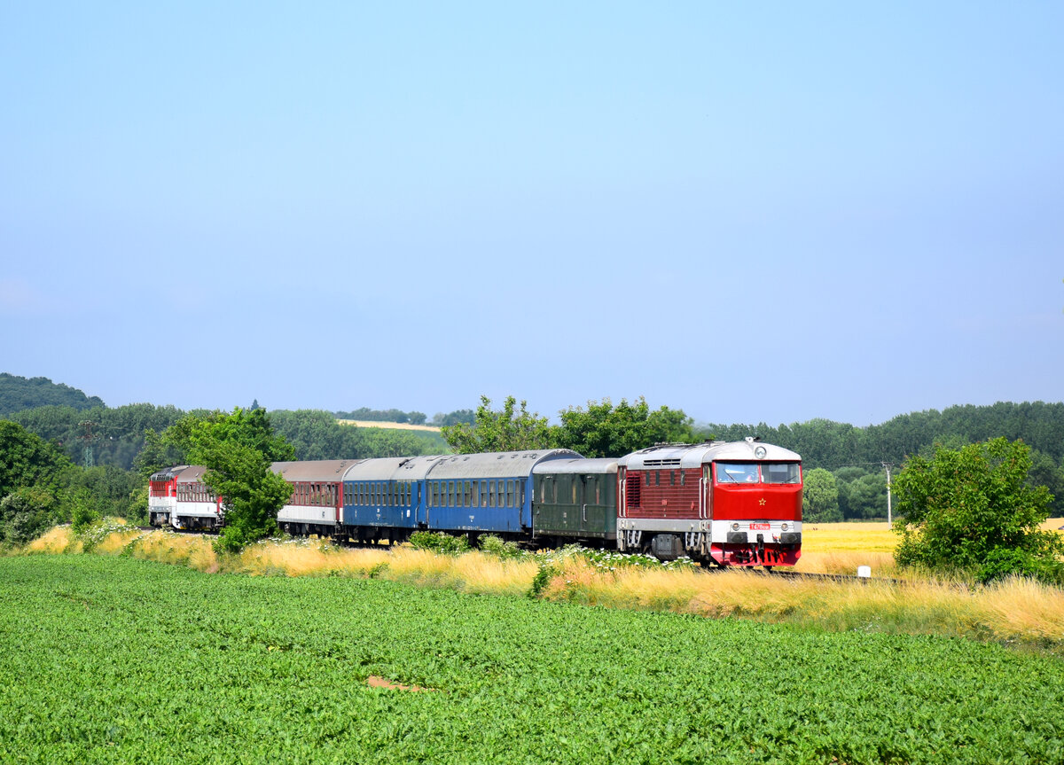 Die T478 1201 (751 201) mit einem Slowakei-Rundfahrt Sonderzug bei Čakajovce.