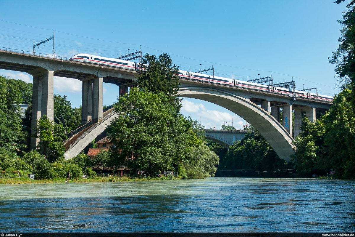 401 162 ff. "Worms als ICE 1124 München Hbf - Hamburg-Altona am 02.07.2021 am Eszetsteg in Stuttgart.