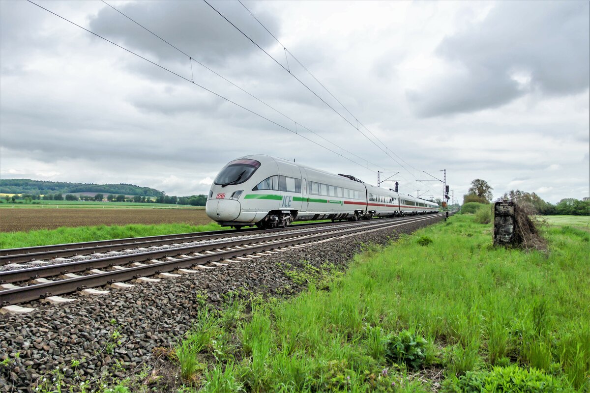 ICE 411 505-1 (Horb am Neckar) ist am 18.05.2021 in Richtung Kassel unterwegs,gesehen in Friedland.