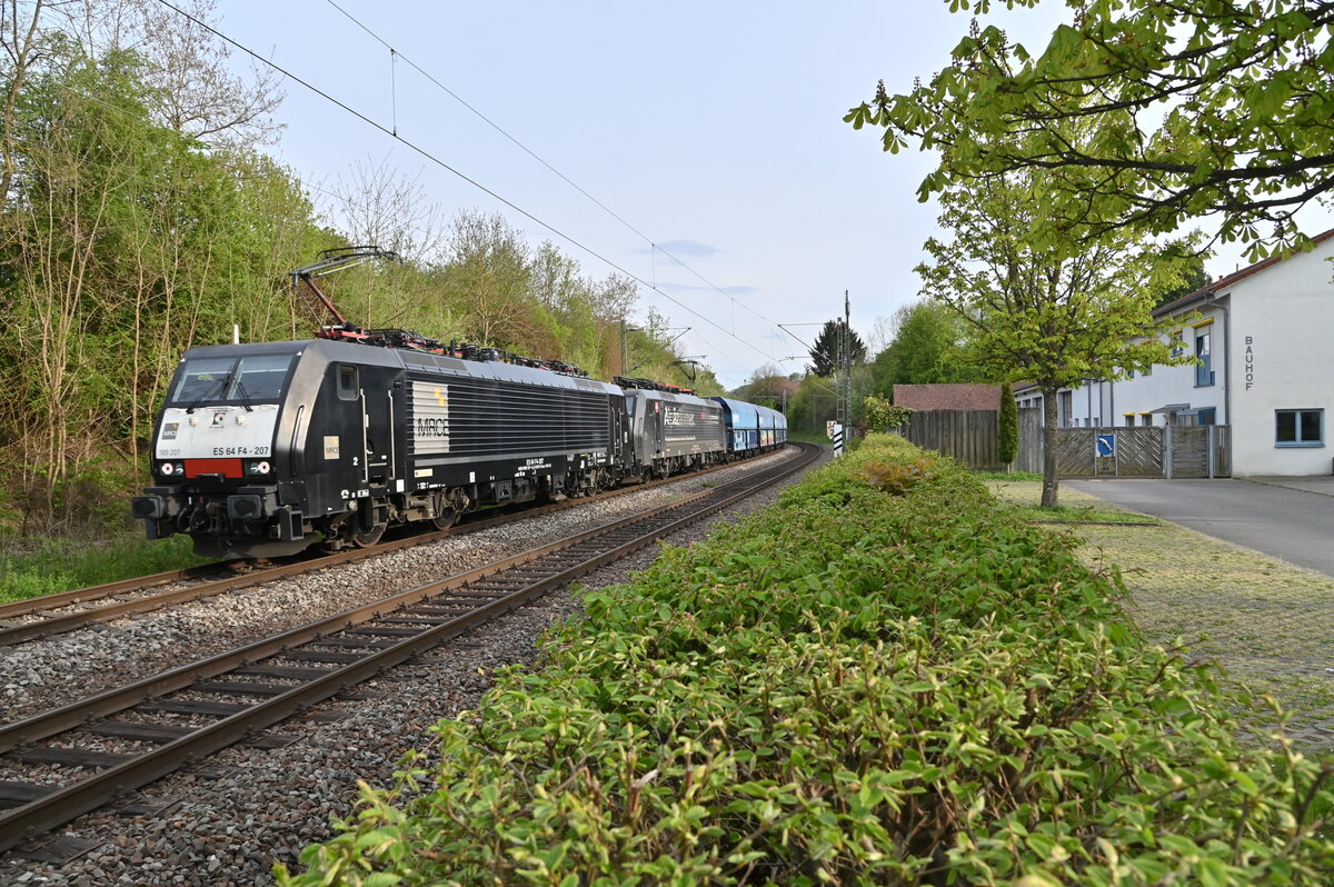 Mit dem samstäglichen DGS 48865 von München Nord wurden am 08. Mai 2021 Produkte aus dem Volkswagenkonzern nach Italien transportiert. Umgespannt werden musste in Kufstein wie sonst üblich nicht mehr, die italientauglichen 193 771 und 189 905 waren gleich von Anfang an am Autotransportzug. Die fotogene Leistung konnte ich bei Vogl aufnehmen.