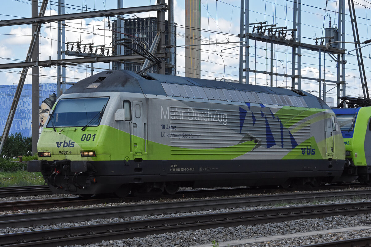 Re 465 002-4 durchfährt den Bahnhof Pratteln. Die Aufnahme stammt vom 09.07.2021.