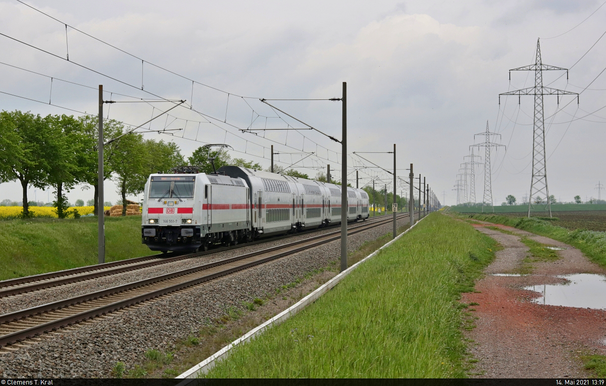 Wegen eines Notarzteinsatzes am Gleis in Gütersloh verzögerten sich einzelne IC-Fahrten, so auch Wagenpark "Nationalpark Sächsische Schweiz" mit 146 551-7 an der Blockstelle (Bk) Braschwitz.