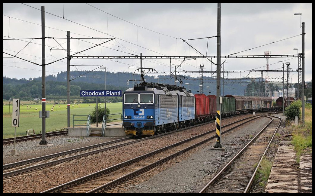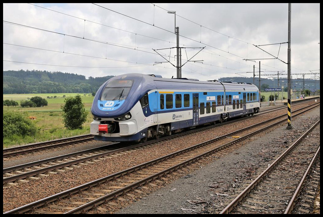 Am 28.6.2021 schaffte ich es in letzter Minute, den im Bahnhof Chodov bei Karlsbad am Bahnsteig gegenüber abfahrenden CD 810548-8 um 11.15 Uhr im Bild fest zu halten.