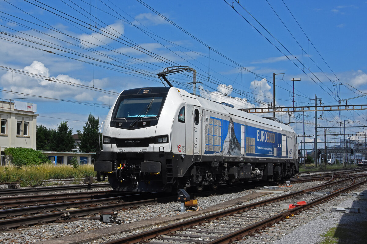 Stadler Euro 9000 Lok 90 80 2019 300-3 durchfährt solo den Bahnhof Pratteln. Die Aufnahme stammt vom 09.07.2021.