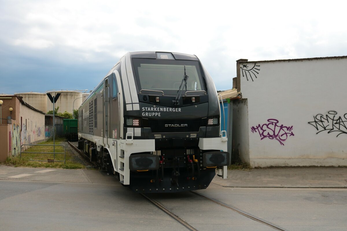 MHG - Magdeburger Hafen GmbH, Magdeburg mit der von Alstom gemieteten "202 746-4" [NVR-Nummer: 98 80 3202 746-4 D-ALS] mit der Überführung eines fabrikneuen Stadler FLIRT3 4-teilig für die bayerische Go-Ahead GmbH (GABY) am 12.07.21 Durchfahrt Bf. Berlin Hohenschönhausen.
