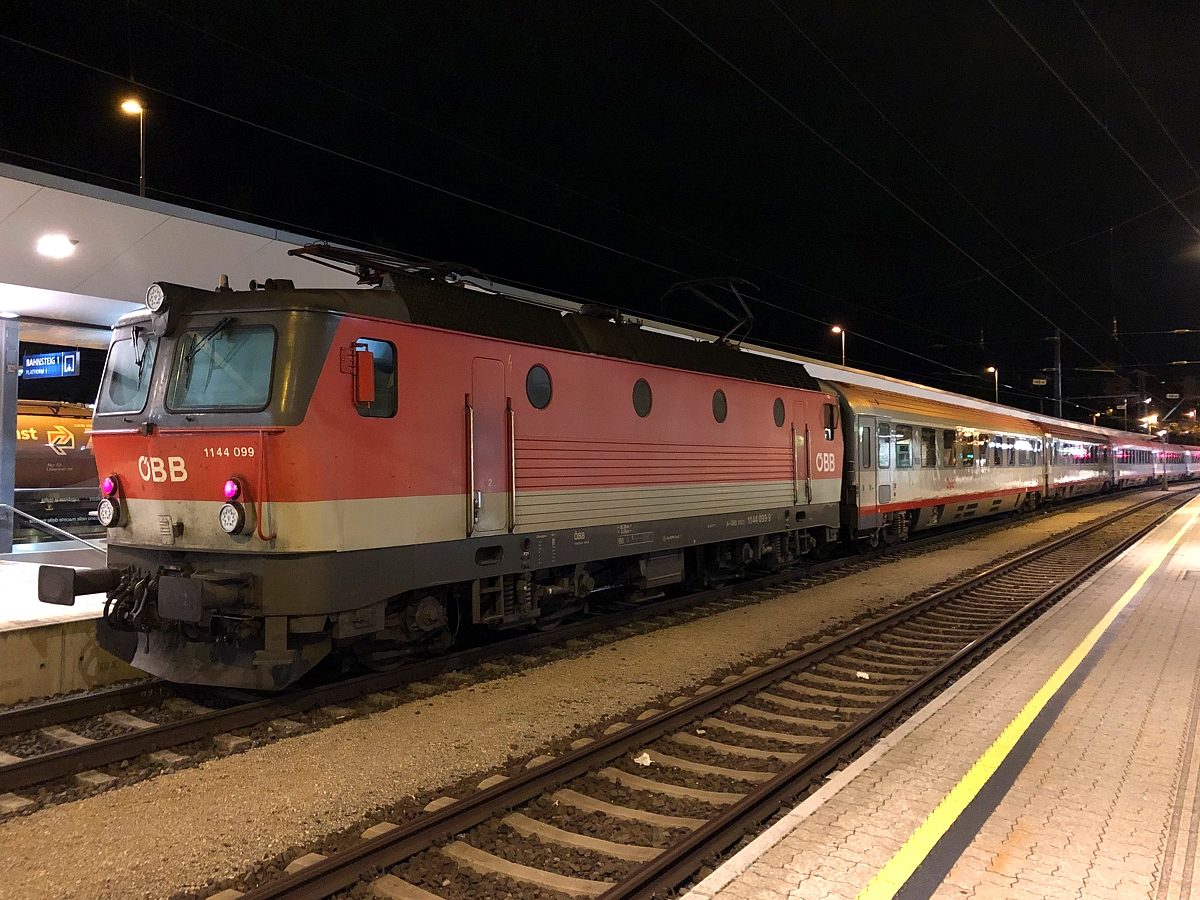 Um 5 Uhr Früh wartet 1144 099 mit REX 5361 auf Gleis 2 D-G auf die Abfahrt nach Innsbruck Hbf. Landeck-Zams am 27.08.2019