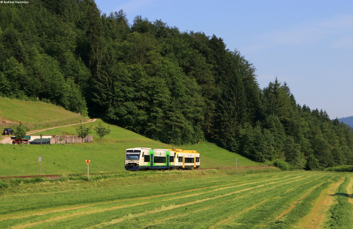 GW Train 816002-0 erreicht hier am 28.06.2021 um 9.29 Uhr als Zug 7102 nach Karlsbad den Ortsrand von Teplicka.