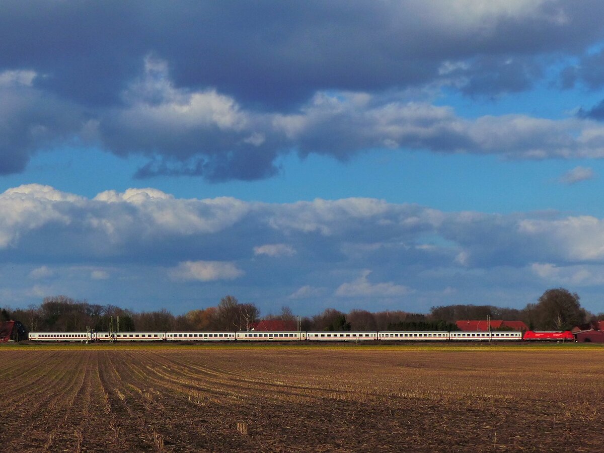 IC 2207 mit unbekannter 101 in ganzer Länge bei Salzbergen (ehem. Bk. Deves), 03.04.15
