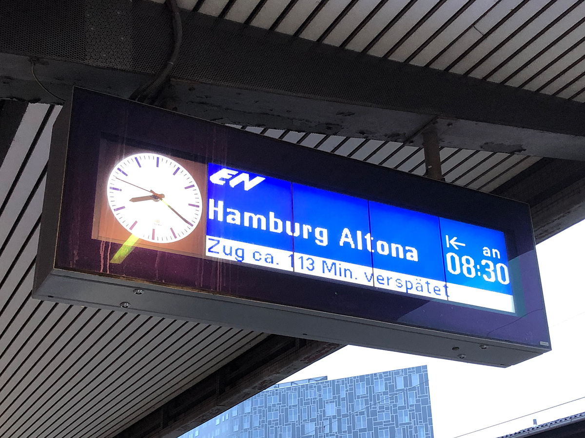 Zugzielanzeige eines "leicht" verspäteten Turnuszuges aus Hamburg Altona. Innsbruck Hbf am 28.12.2019