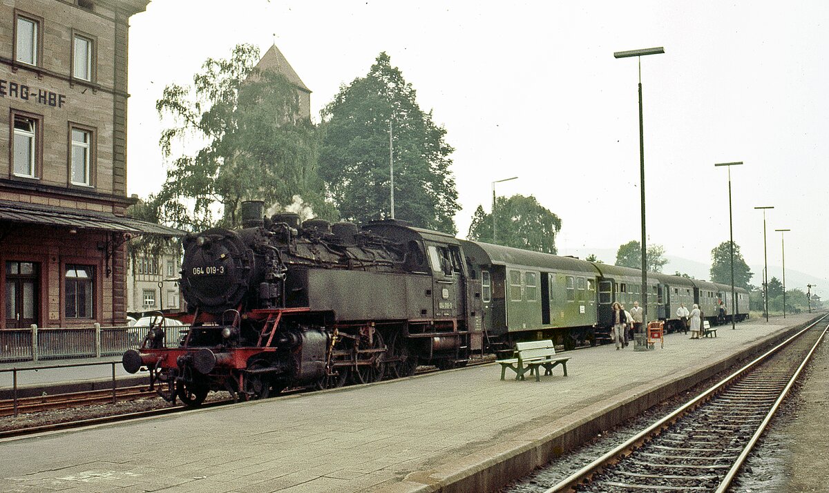 99 7240 hat mit P 8964 (Eisfelder Talmühle - Quedlinburg) gerade den Bahnhof Mägdesprung verlassen, überquert jetzt wieder die B 185 und nimmt nun mit wuchtigen Auspuffschlägen und viel Qualm die lange Steigung nach Sternhaus-Ramberg hinauf in Angriff. (Bild 4) Noch ein letzte Blick auf das heftig schnaufende Zugpferd, dann steht der nächste Stellungswechsel unserer Fototour an und zwar zum Bahnhof Gernrode.