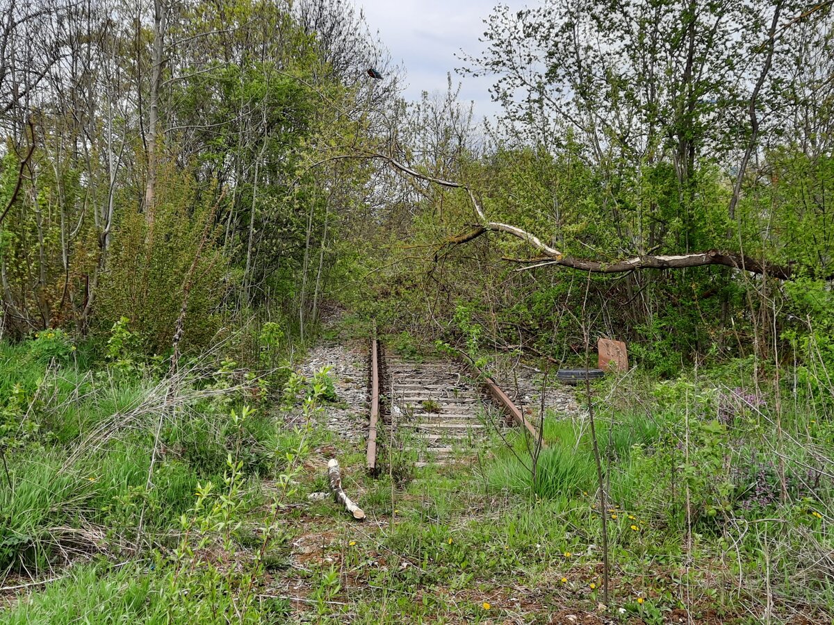 Das Gleis zur ehemaligen K+S Zentralwerkstatt, am 19.05.2021 in Heringen (Werra).