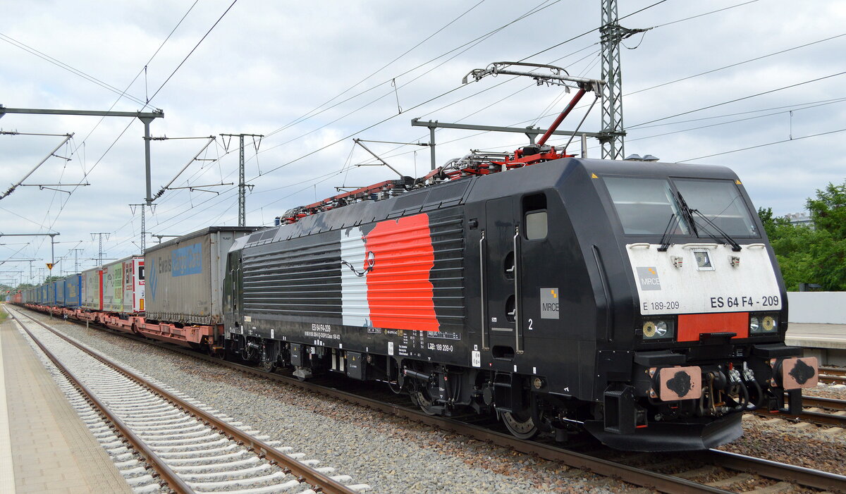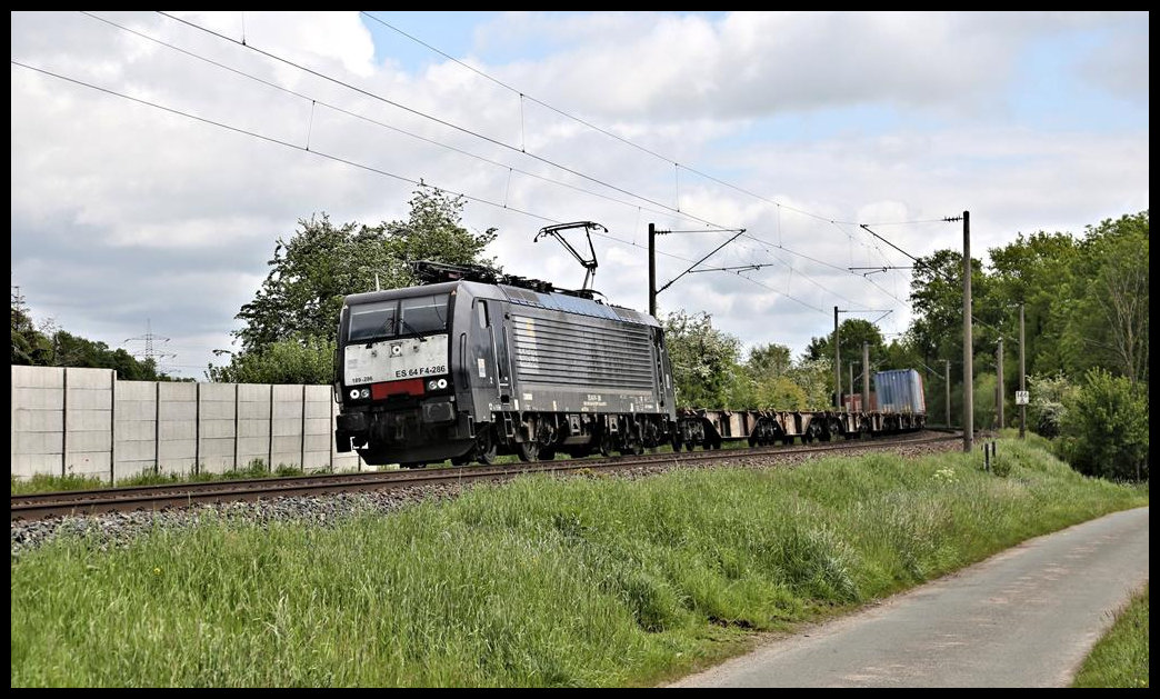 Mit einem KLV-Zug des Poznan-Shuttle rollte 186 942 der LTE am 24.05.21 durch Muldenstein Richtung Bitterfeld.