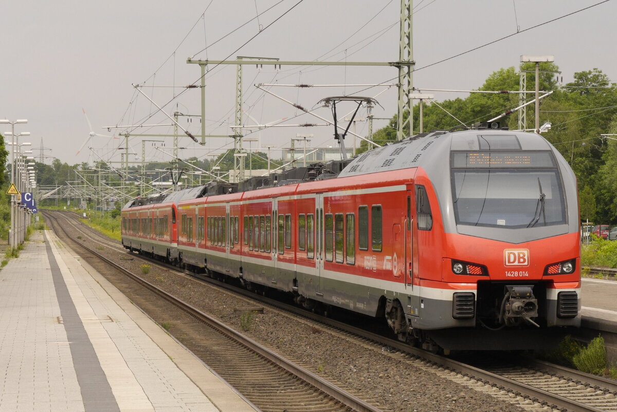 Am Mittag des 02.06.2021 durfte die TRI 110 428 auch mal auf der Frankenbahn eine Runde drehen. Die sonst nur auf dem HVZ-Umlauf eingesetzte Garnitur war an diesem Tag aufgrund von Personalschulungsfahrten auch auf dem RE10 nach Heilbronn im Einsatz. Hier zu sehen auf der Rückfahrt nach Stuttgart bei Lauffen am Neckar.