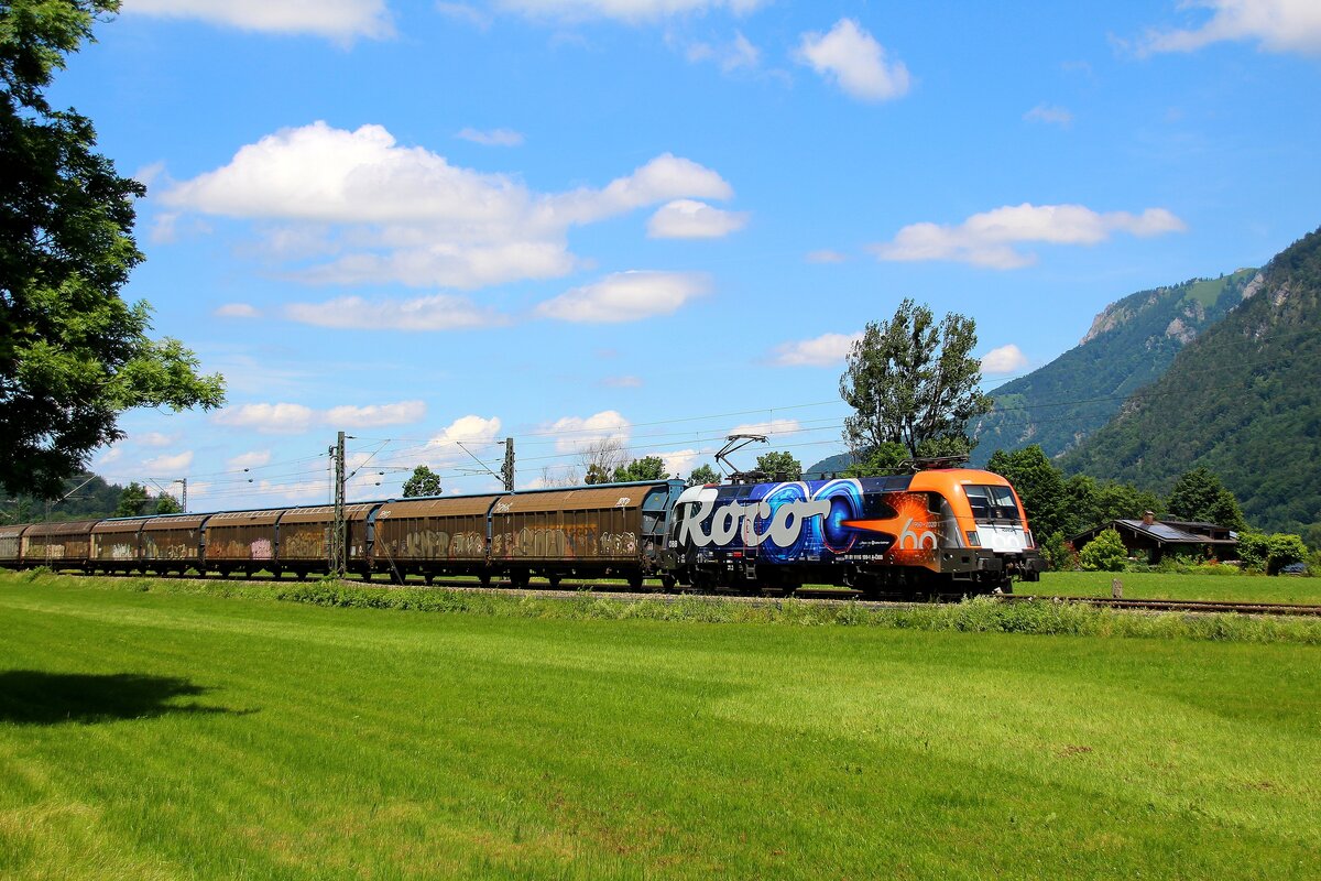 193 266 der ELL geht am 16.06.2021 mit einem "Walter" in Richtung Salzburg bei Bernau in eine Linkskurve