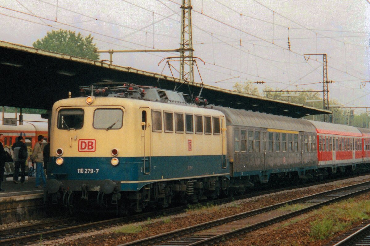 RB nach Mönchengladbach mit 110 279 steht am 28 Juli 1998 auf dieser Scanbild in Köln Deutz.