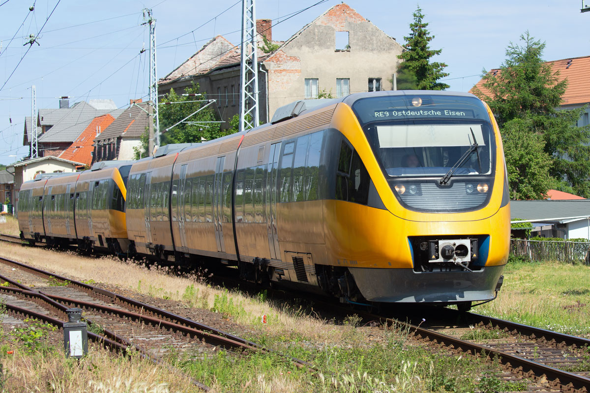 101 058 schleppte am 06.06.21 einen Triebzug der BR 403 durch Radis Richtung Bitterfeld.