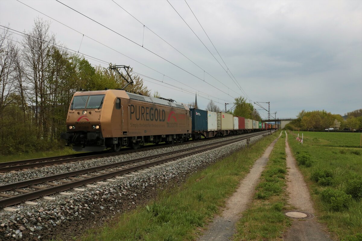 Ein Neuverkehr in Bayern ist der DGS 43869. Dieser KLV-Zug ist einheitlich mit Wechselbrücken und Containern der italienischen Spedition Ambrogio beladen und verkeht zwischen Neuss und Verona. Zwischen Nordrhein-Westfalen und Bayern befördert das Unternehmen Crossrail die Leistung, ab München Ost Rbf übernimmt Lokomotion und bringt den Zug über den Brenner nach Italien. Am 31. März 2021 begegnete mir die 186 271 mit dieser Verbindung bei Langweid vor den Toren Augsburgs.