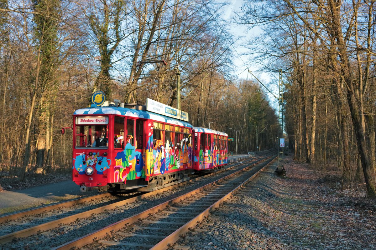 VGF Ebbelweiexpress K-Wagen 108 am 06.03.21 in Frankfurter Stadtwald bei einer Bewegungsfahrt