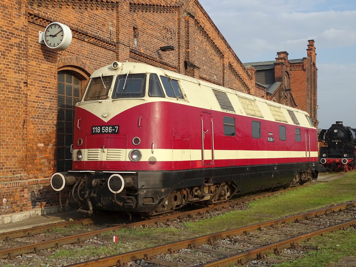 118 586 (228 586) am 26.09.21 auf dem Herbstlokfest im Traditions-Bw Staßfurt.