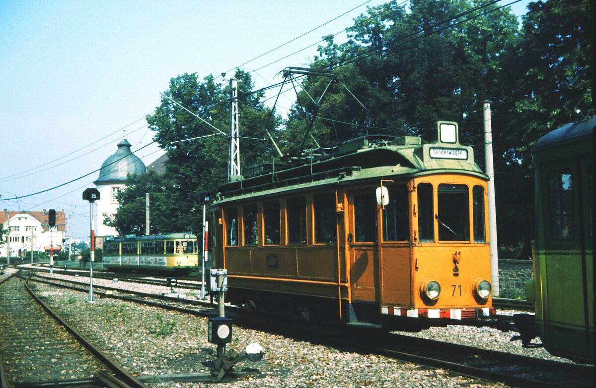 AVG Albtalbahn Bf. Ettlingen Tw 71 Rastatt/SSW 1930;heute Museums-Tw 100 am 24-03-1982