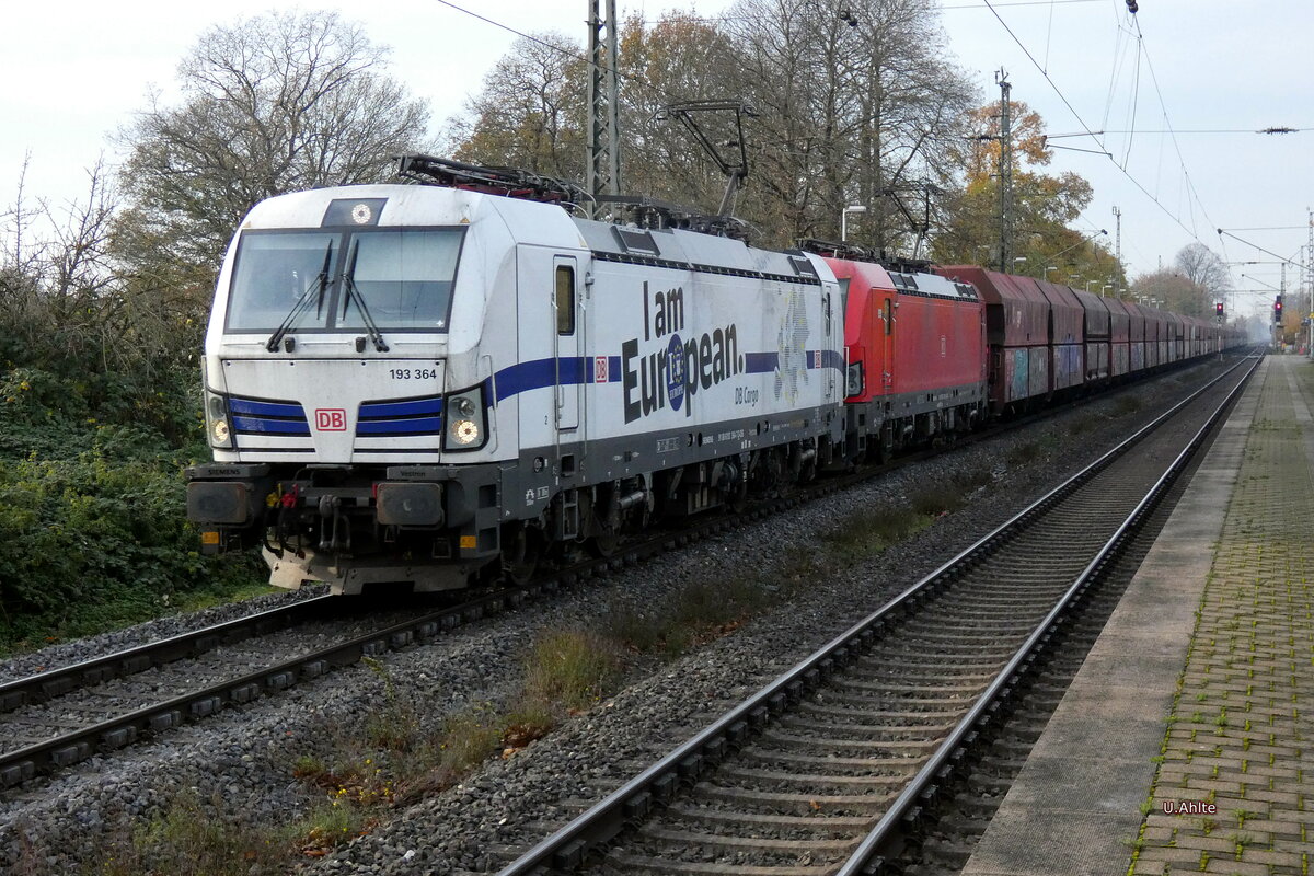 193 364 und 193 325 DB Cargo Durchfahrt Mehrhoog am 12.11.2021 Richtung Oberhausen.