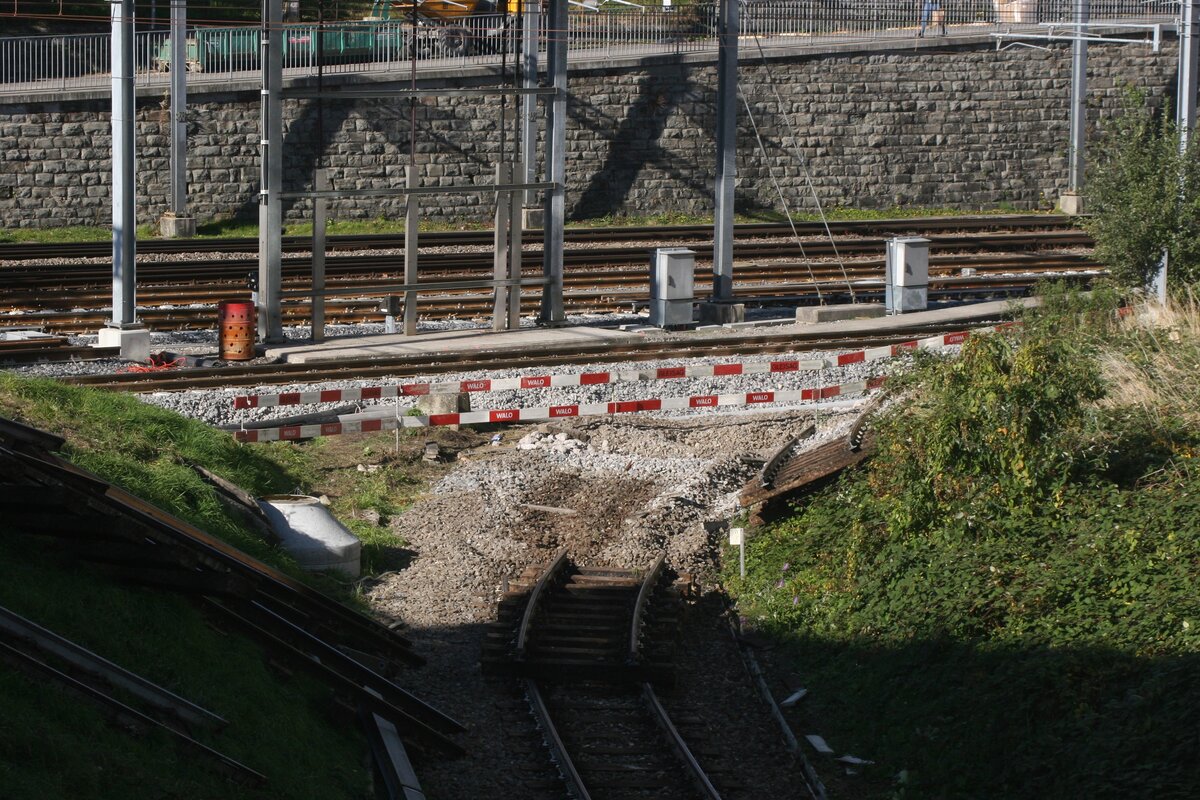 Zum Zeitpunkt meines Besuchs im Bahnhof Süßen stand das Relais-Stellwerk "Sf" der Bauart "Sp Dr S59" von Siemens kurz vor seiner Außerbetriebnahme. Am 28.8.2021 wurde es schließlich durch elektronische Stellwerkstechnik ersetzt. Im Zuge dessen fanden entsprechende Bauarbeiten statt. Unter anderem wurden Ks-Signale aufgestellt, neue Oberleitungsmasten gesetzt und Teile des Oberbaus erneuert.