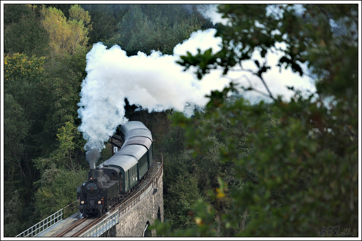 Die Dampflokomotive 78 468 zog bei wahrlich useligem Wetter einen Sonderzug über das Viadukt in Witten-Bommern. (August 2021)
