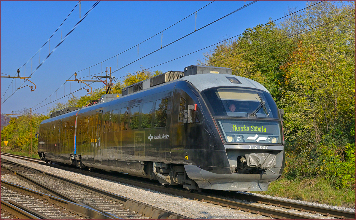 SŽ 312-007 fährt durch Maribor-Tabor Richtung Murska Sobota. /28.10.2021