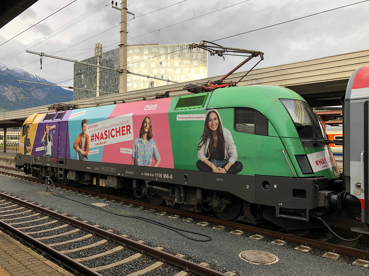 Da die InnoTrans in diesem Jahr ausfällt, veranstaltet RailAdventure in diesem Jahr eine mobile Roadshow und lädt Kontakte und Kunden auf diesem Wege zu Gesprächen ein. Zu den teilnehmenden Fahrzeugen gehören auch die britischen Class 43 92 70 0043480-7 D-RADVE und 92 70 0043484-9 D-RADVE, die am 06.10.2021 im Münchener Hauptbahnhof (für Fotografen leider äußerst unvorteilhaft) abgestellt sind.