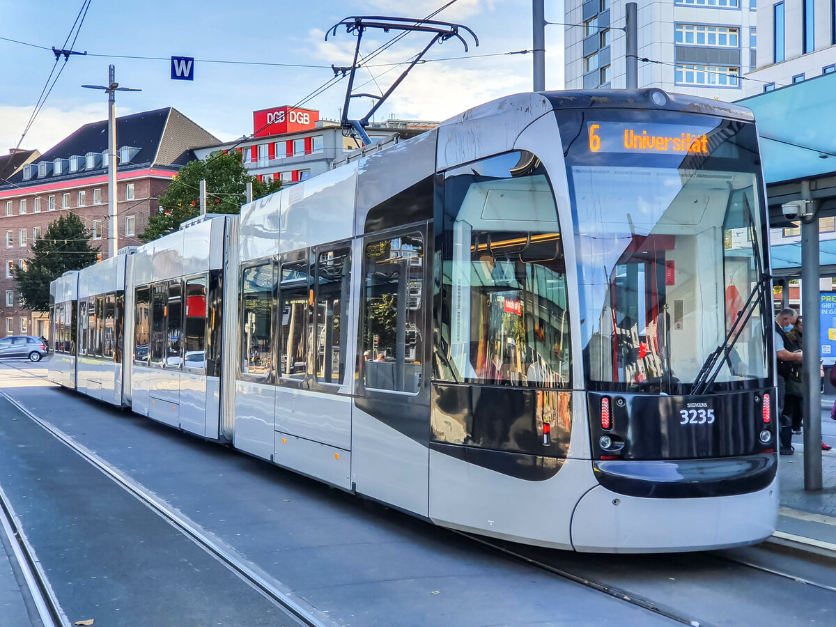 Straßenbahn Bremen Zug 3235  Nordlicht  auf der Linie 6 nach Universität am Hbf, 04.10.2021.
