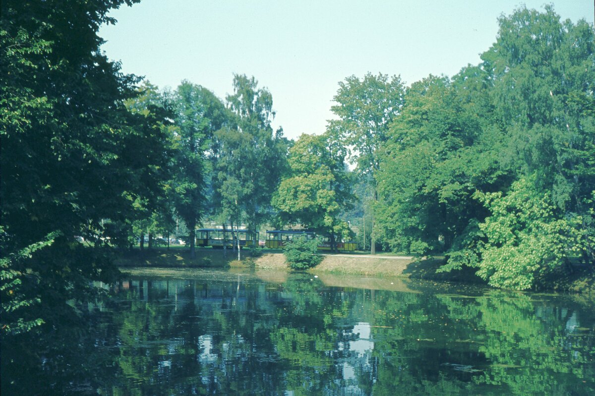 Ulm 08-09-1973 Linie 1 am Ehinger Tor Ri. Söflingen mit Tw 10 (GRW4 ME 1958)+ Bw 65 = ex SSB 1308; Fuchs HD; Bj. 1953; 1966 Vk an SWU; 1978+. Hier abgebildet ist der ursprünglich im Linienverkehr als Bw 65 in Ulm eingesetzte ex Stuttgarter 1300er. Der heutige baureihengleiche Museums-Bw mit der Nr. 65 ist der ursprüngliche Bw 1330 der SSB, der mit dem "Umweg" über das Dt. SB-Museum Hannover, erst viele Jahre später in Ulm ankam.