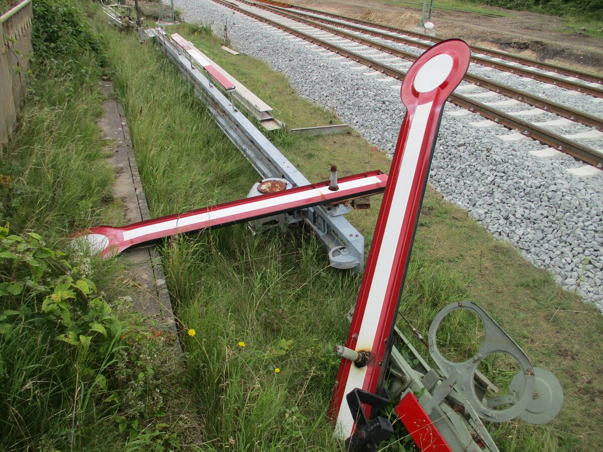 Aufgenommen vom offenen Bahnübergang Straße der Einheit.