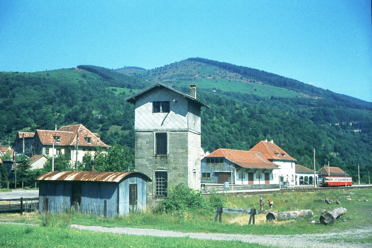 Wer nach Wasen im Emmental wollte ist in Ramsei umgestiegen in den Kurzpendelzug dorthin, via Sumiswald Grünen. Hier wartet in Ramsei am 31.Dezember 1992 dieser Kurzpendel mit umgebautem EBT-Triebwagen De4/4 und einem einzigen Personenwagen, nämlich Steuerwagen 50 38 20-03 911, der aus einem alten SBB-Mitteleinstiegwagen (vermutlich 20-39 090) hergerichtet worden war. 1994 wurde die Strecke Sumiswald Grünen - Wasen im Emmental stillgelegt (Heute glücklicherweise Museumsbahn).