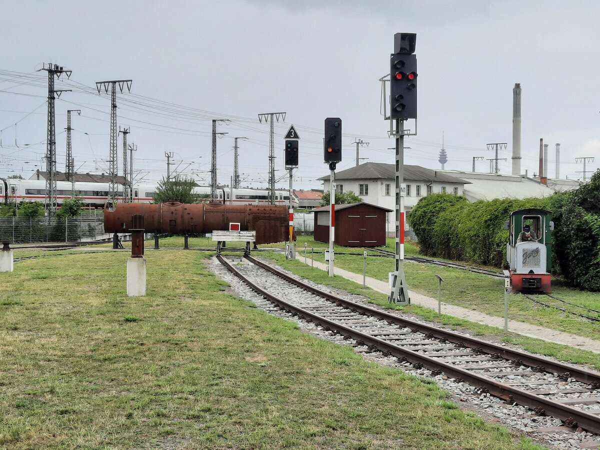 Verschiedene Lichtsignale und die Feldbahn am 01.08.2021 im DB Museum Nürnberg.