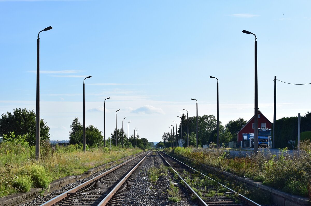 Blick auf den stillgelegten Abschnitt des Keilbahnhofs Großbothen. Hier fuhren früher die Züge nach und von Rochlitz ab. Seit 2000 ist dort der Verkehr eingestellt.