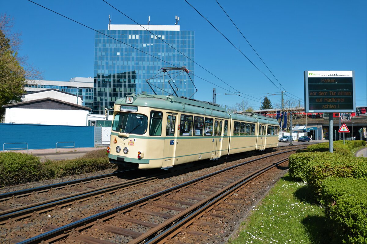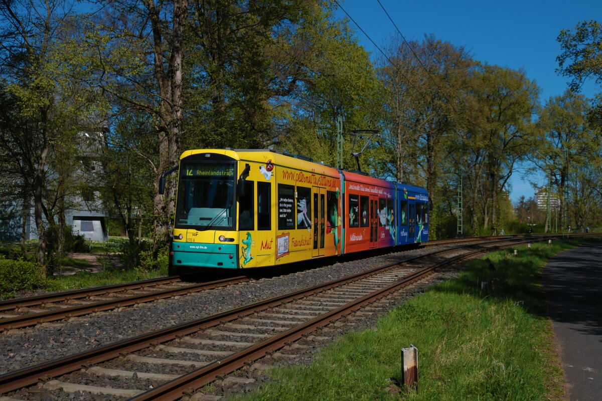 VGF Düwag L-Wagen 124 als Osterhasenexpress am 10.04.22 in Frankfurt