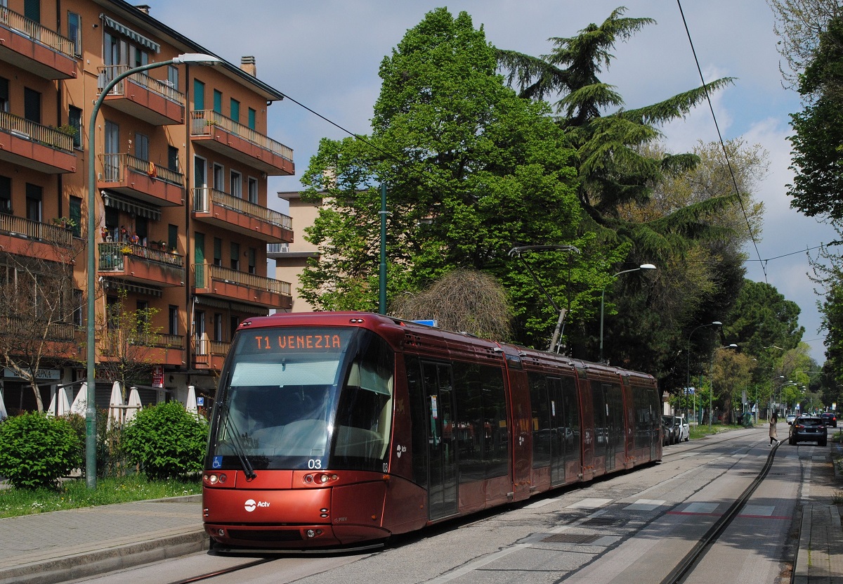 Tw.03 in der Viale San Marco bei der Einfahrt in die Haltestelle Sansovino. (25.04.2022)