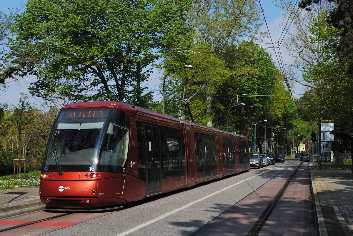 Tw.16 in Süden von Mestre in der Viale San Marco an der Haltestelle Forte Marghera (25.04.2022)