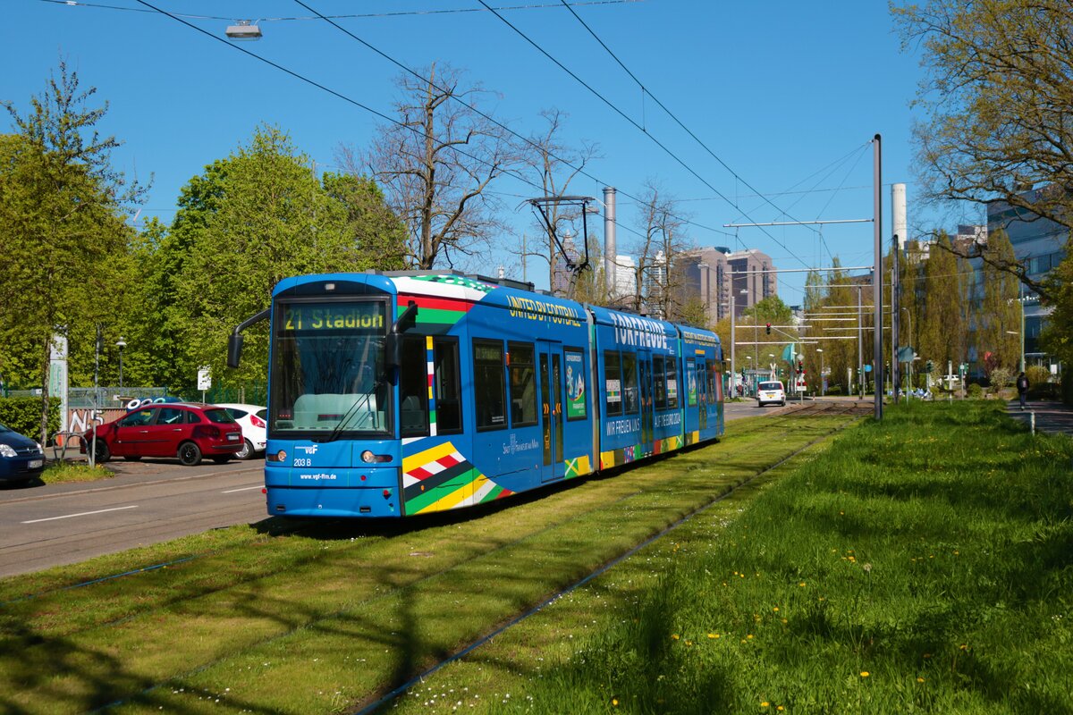 VGF Bombardier Flexity Classic S-Wagen 203 am 10.04.22 in Frankfurt