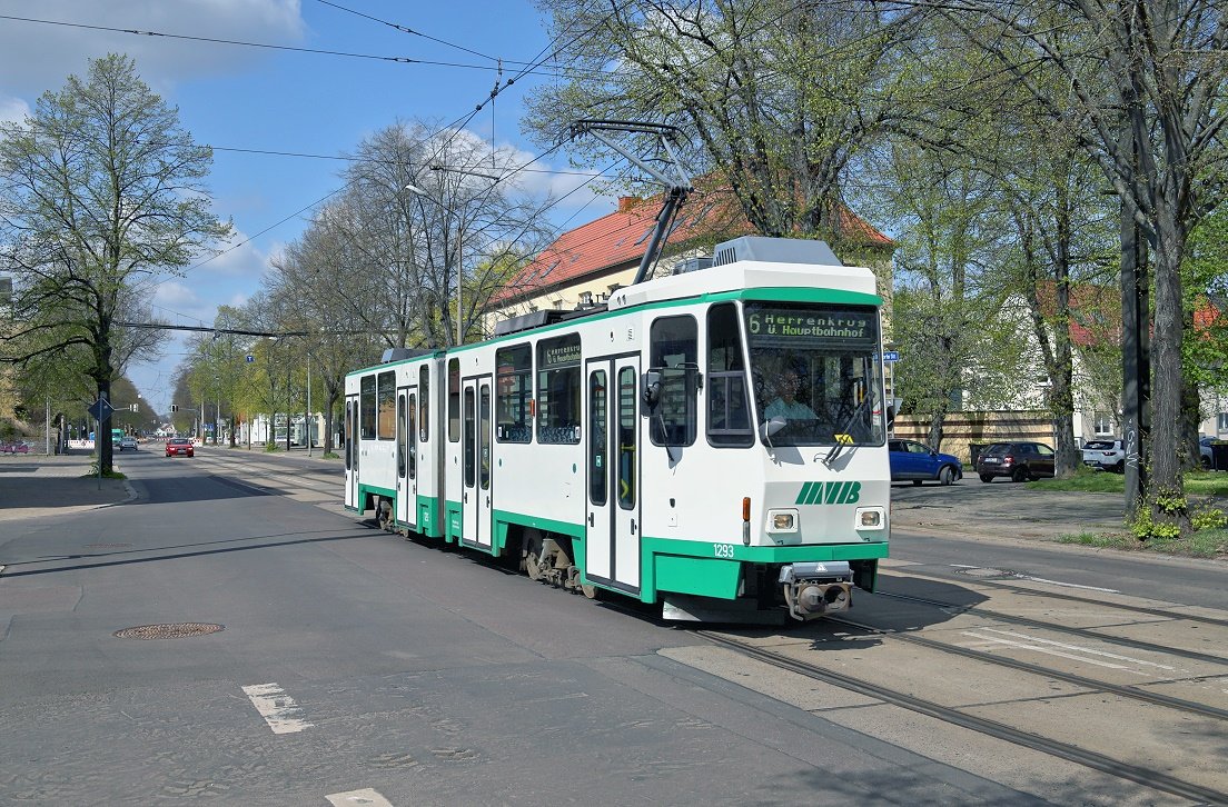 Werkstattwagen A95 (ex 42; Typ DUEWAG GT6) schleppt gleich den liegengebliebenen Wagen 29 (Typ Tatra KTNF6) an der Haltestelle  Brösener Straße  ab.