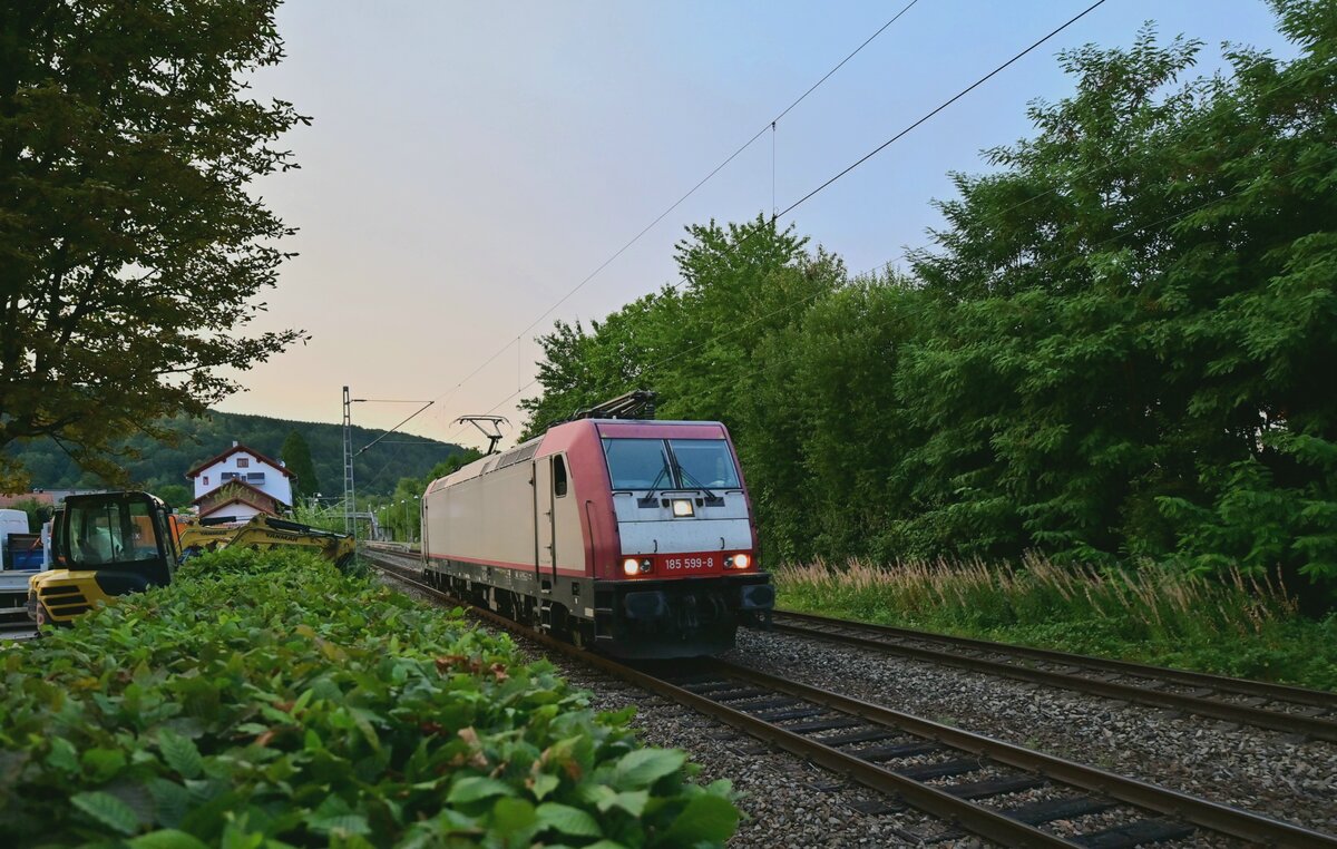 152 054-3 und 185 250-8 (Schublok) mit dem EZ 52097 (Kornwestheim Rbf - Singen(Htw)) bei der Ausfahrt Villingen 4.8.22.