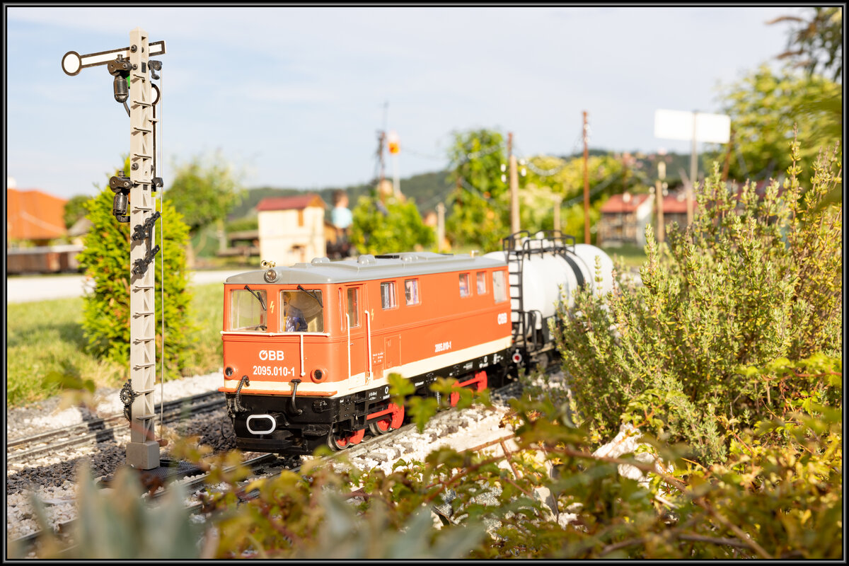 2095.010 zieht an diesem 15.August 2022 einen Kesslewagen über die Anlage der GGB.