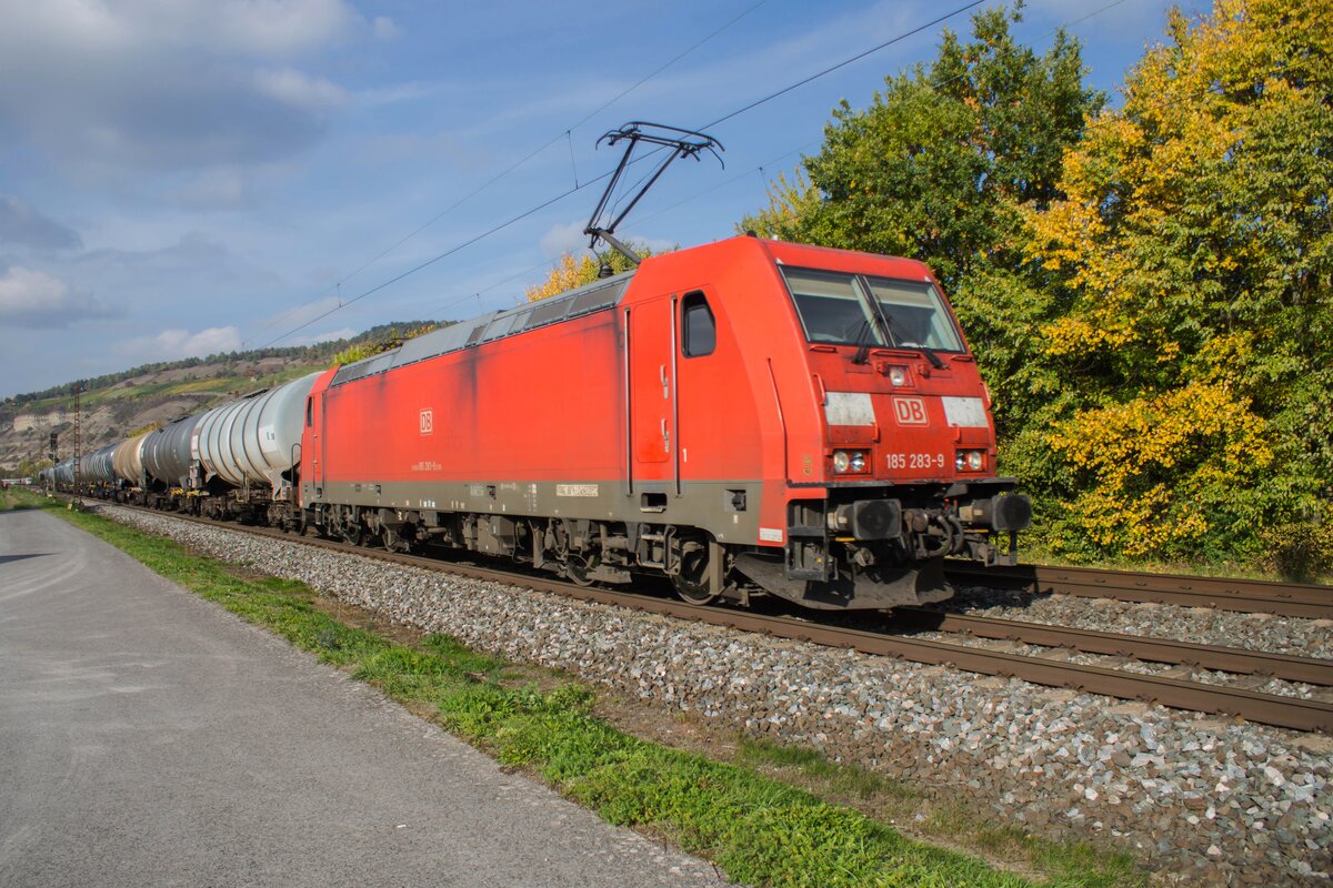 185 283-9 mit einem Kesselzug am 12.10.2022 bei Thüngersheim.