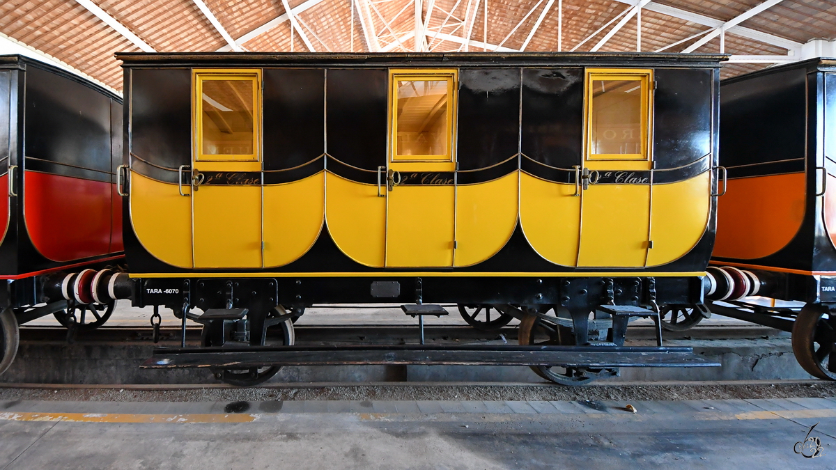 Bei diesem II.-Klasse-Personenwagen (TARA-6070) handelt es sich um einen betriebsfähigen Nachbau aus dem Jahr 1948. (Eisenbahnmuseum von Katalonien in Vilanova i la Geltrú, November 2022)