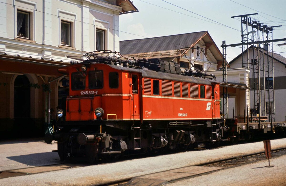 Diesen verlorenen ET fand ich vor der Hauptwerkstätte Vorchdorf (12.07.1986). Es war der Schweizer BDe 4/4 3 von der Trogenerbahn, welcher auf der Lokalbahn Gmunden-Vorchdorf nie gefahren wurde. Es waren dort drei ETs dieser Baureihe vorhanden (ebenfalls von der Trogenerbahn erworben), seine beiden Schwestern hatten bei der Lokalbahn Gmunden-Vorchdorf die Nummern ET 23.105 und ET 23.106. Der abgestellte Schweizer ET wurde nur noch als Ersatzteillager benötigt.