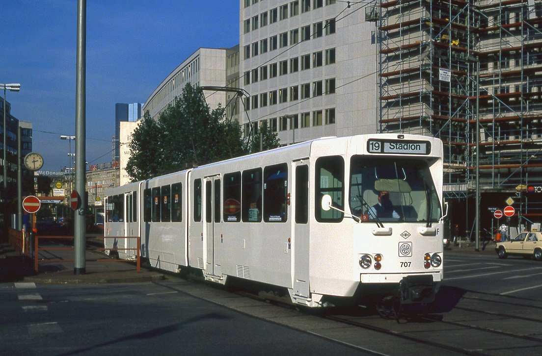 Dieser Uerdinger Schienenbuszug wartete am 23.08.1985 vor dem (früheren) Bahnhof Traben-Trarbach auf seine Weiterfahrt nach Bullay. Der Bahnhof verlor später seine Aufgabe als Bahnhofsempfangsgebäude, da die Station räumlich verlegt wurde.