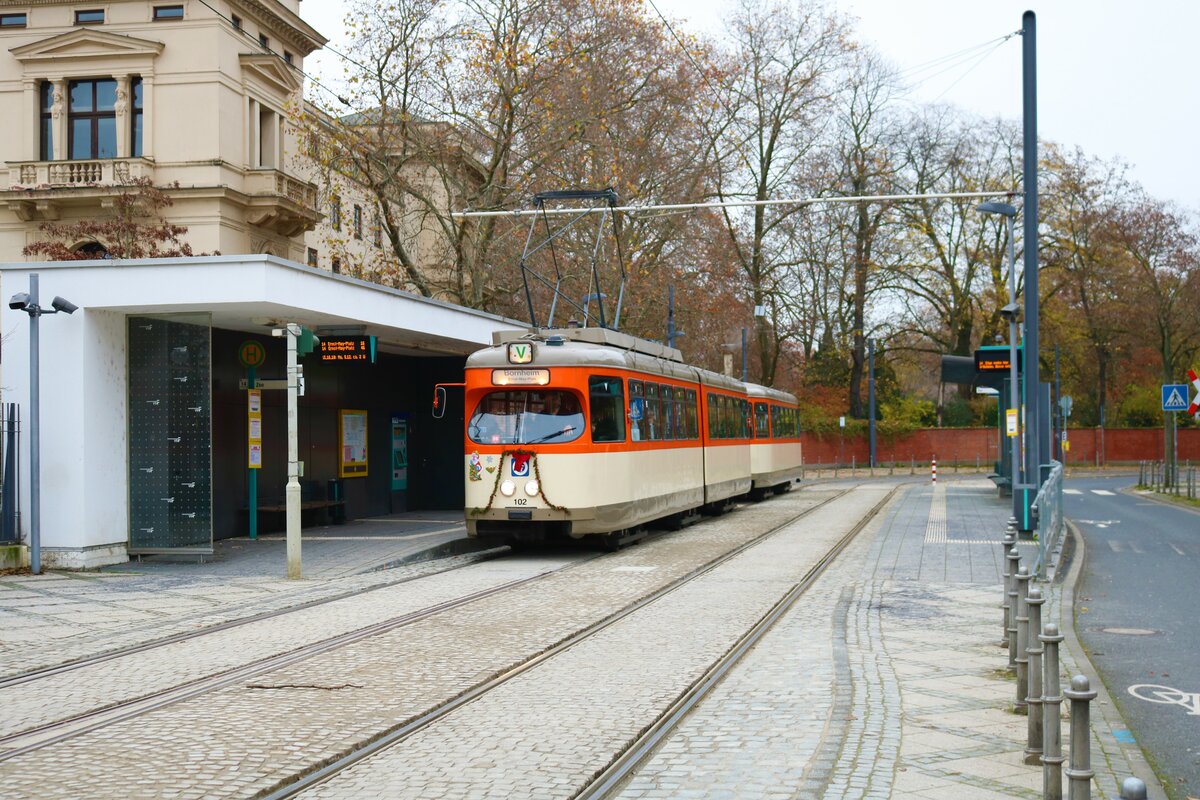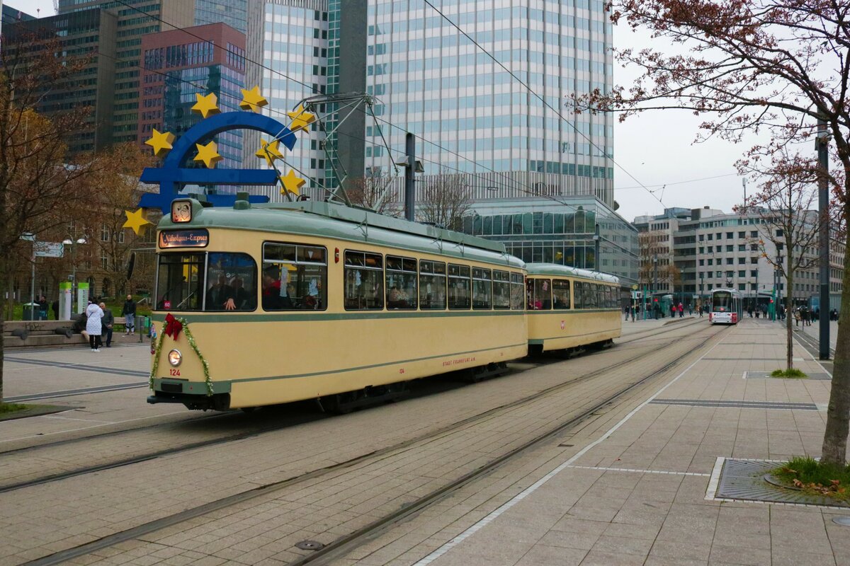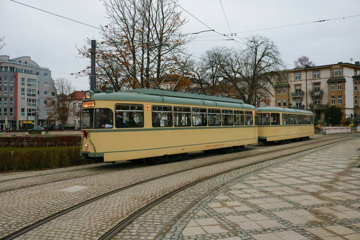VGF Düwag L-Wagen 124 am 04.12.22 in Frankfurt am Main als Weihnachtsmarkt Tram